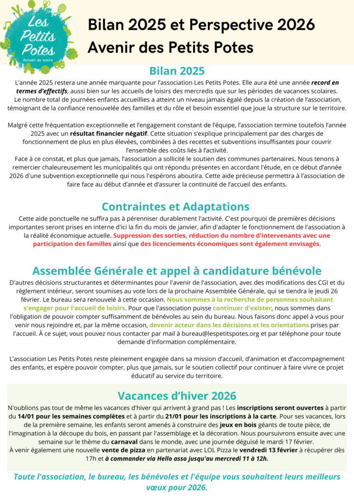 Toute l’équipe des Petits Potes vous souhaite leurs meilleurs voeux pour cette nouvelle année