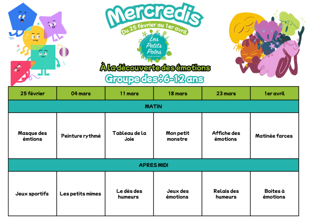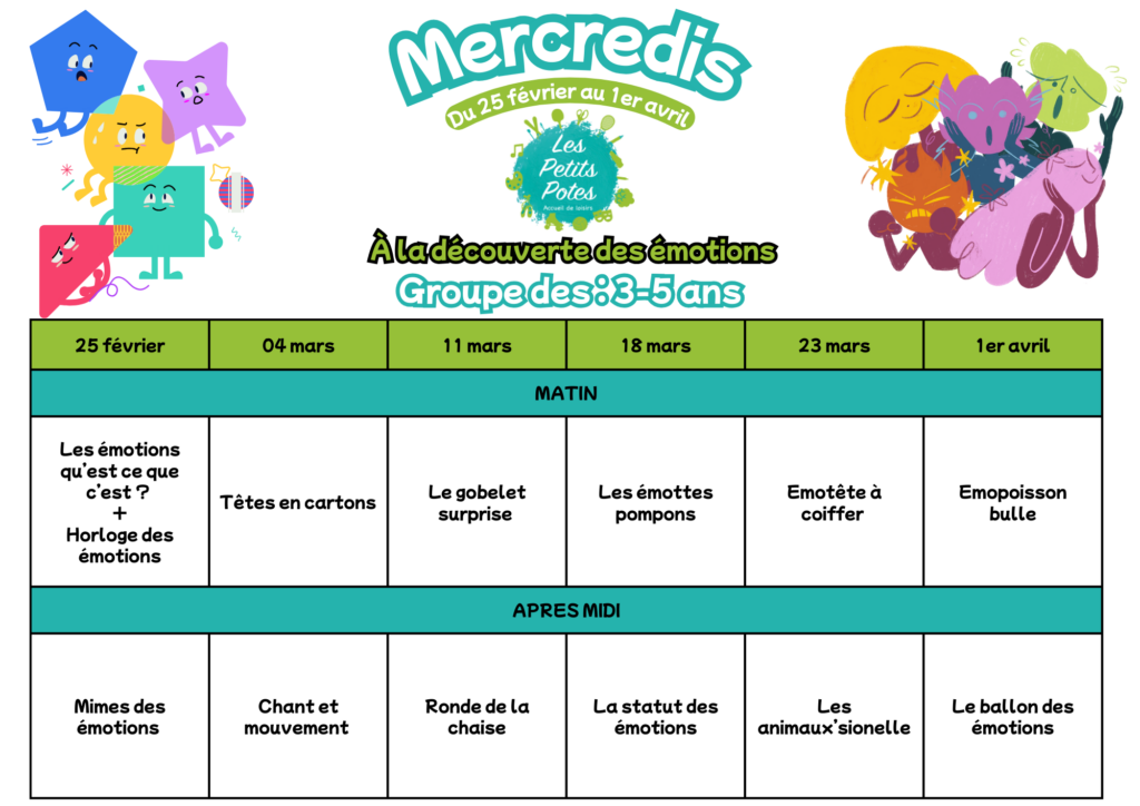 Du 25 février au 1er avril, nous partons à la découverte de nos émotions au travers de nombreuses activités !